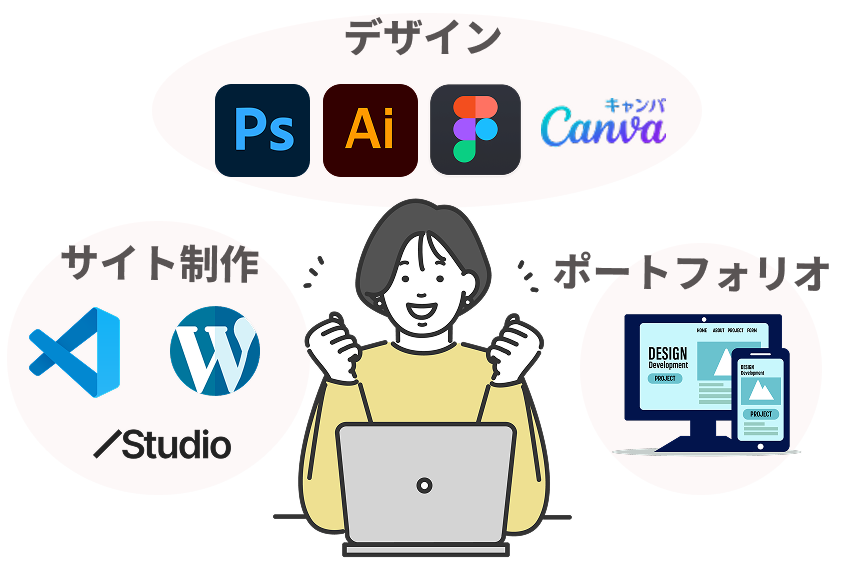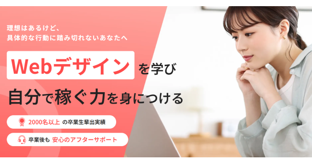 独学では時間がかかるWebデザインも、スクールなら体系的に学べるから効率的。副業や在宅ワークに直結するスキルを、短期間で習得できます。